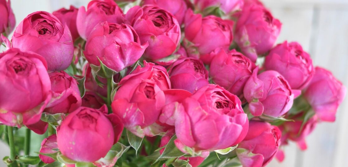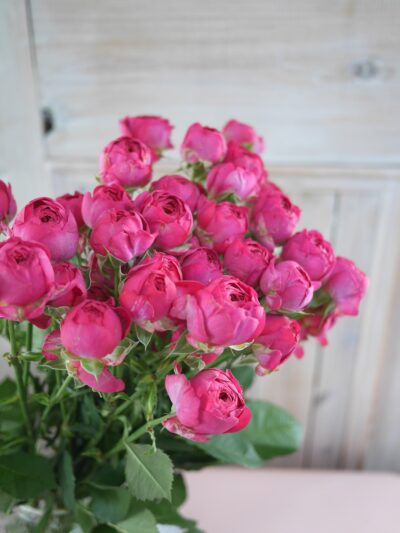 「モモエ」は、濃く美しいピンク色の花びらが印象的なスプレーバラです。