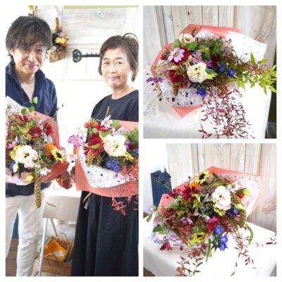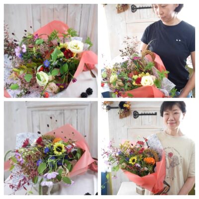 ▲ フラワースクールヘクセンハウス 9月季節の花コース後半「秋を感じる花束」