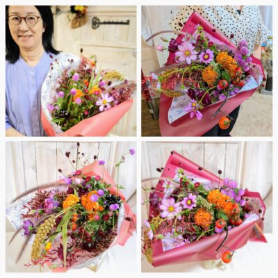 9月の季節の花コース後半は「秋を感じる花束」です。