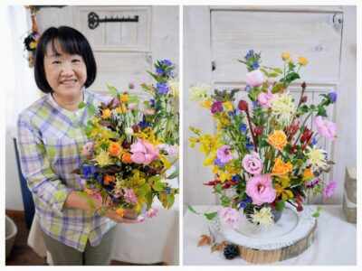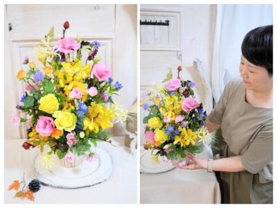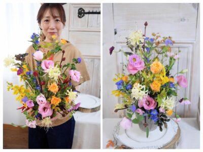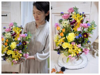 ▲Photo:東京・錦糸町 フラワーアレンジメント教室「季節の花コース」秋花でふんわりオーバルスタイル