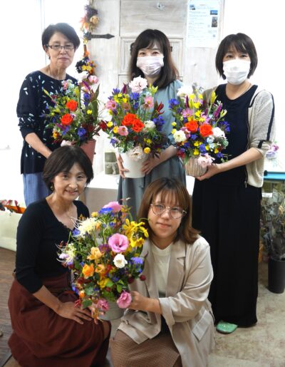 ▲フラワーアレンジメント教室:秋のオーバルスタイルアレンジメント