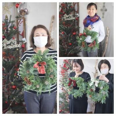 フラワーアレンジメント教室 直径35cmのBIGサイズのクリスマスリース作り