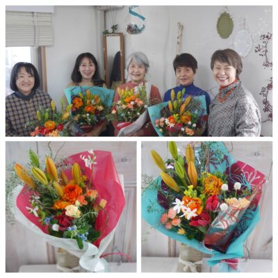 ▲Photo:東京・錦糸町 フラワーアレンジメント教室 「ラッキーカラーのブーケ」