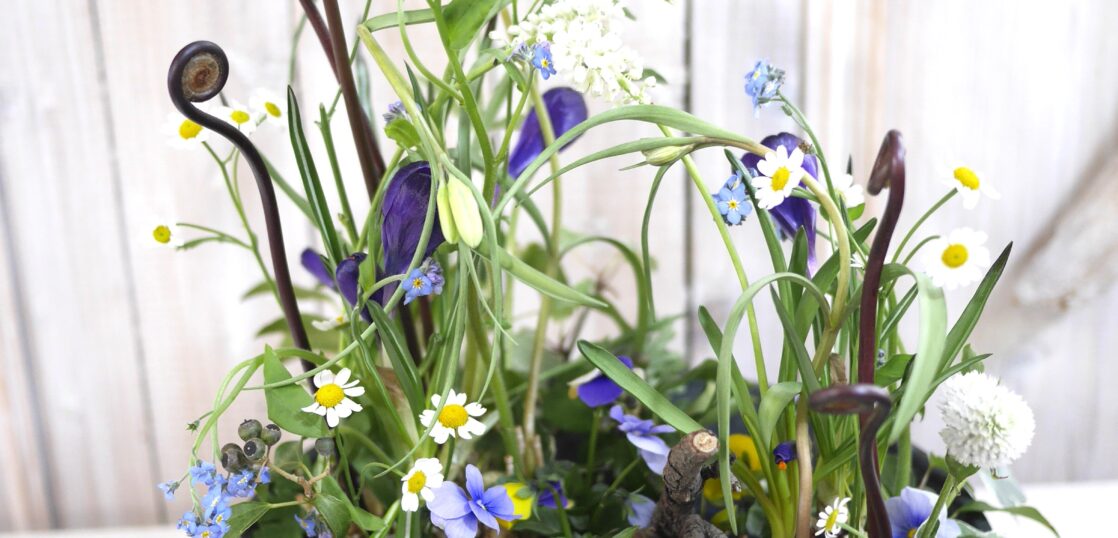 “わずかな主張”とは、パンジーやワスレナグサ、デージー、ムスカリ、クロッカス、コケ類など、自然の中で溶け合うように咲く植物たち。強い個性を打ち出すのではなく、うちとけた豊かさを大切にします。