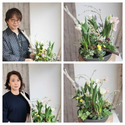 ★2/26木曜の様子 花材が球根付きのチューリップが入ったので、共同形態ではないのですが