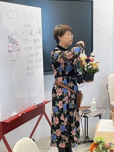 10月22日(水)丸の内パークビルにあります いちご(株)様で、暖かみのあるハロウィンアレンジメント講習会を開催いたしました。