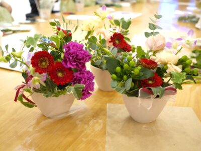 「心が豊かになった」「仕事を忘れて集中できた」「花の香りに癒された」「同じ花材でも全員違う作品になるのが面白い!」など嬉しいご感想を多数いただきました。