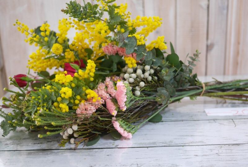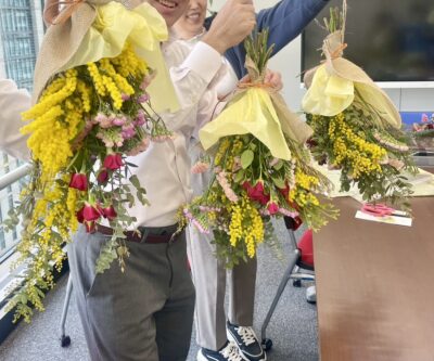 国際女性デー(ミモザの日)に合わせたミモザのスワッグ作りの出張レッスンへ伺ってきました。