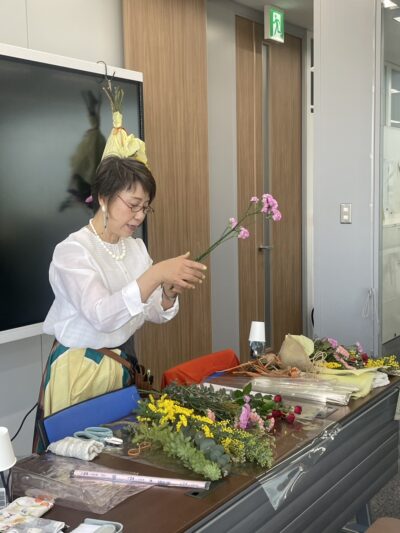 「自宅に飾ります」と笑顔でお話しくださり、花のある時間の温かさを感じるひとときとなりました。